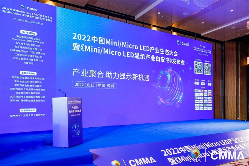 10月13日, 由中國電子視像行業協會Mini/Micro LED顯示產業分會(CMMA)主辦的“2022中國Mini/Micro LED產業生態大會”在深圳凱悅酒店盛大召開。本次大會以“產業聚合 助力顯示新機遇”為主題,旨在聚集產業鏈上中下游企業,促進產業生態創新升級,助推新型顯示技術發展。